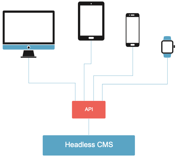 In a headless CMS, the frontend is removed from the equation, leaving only the backend, which acts as an API-based content repository, delivering content to any frontend framework: